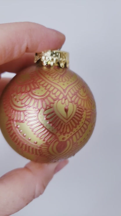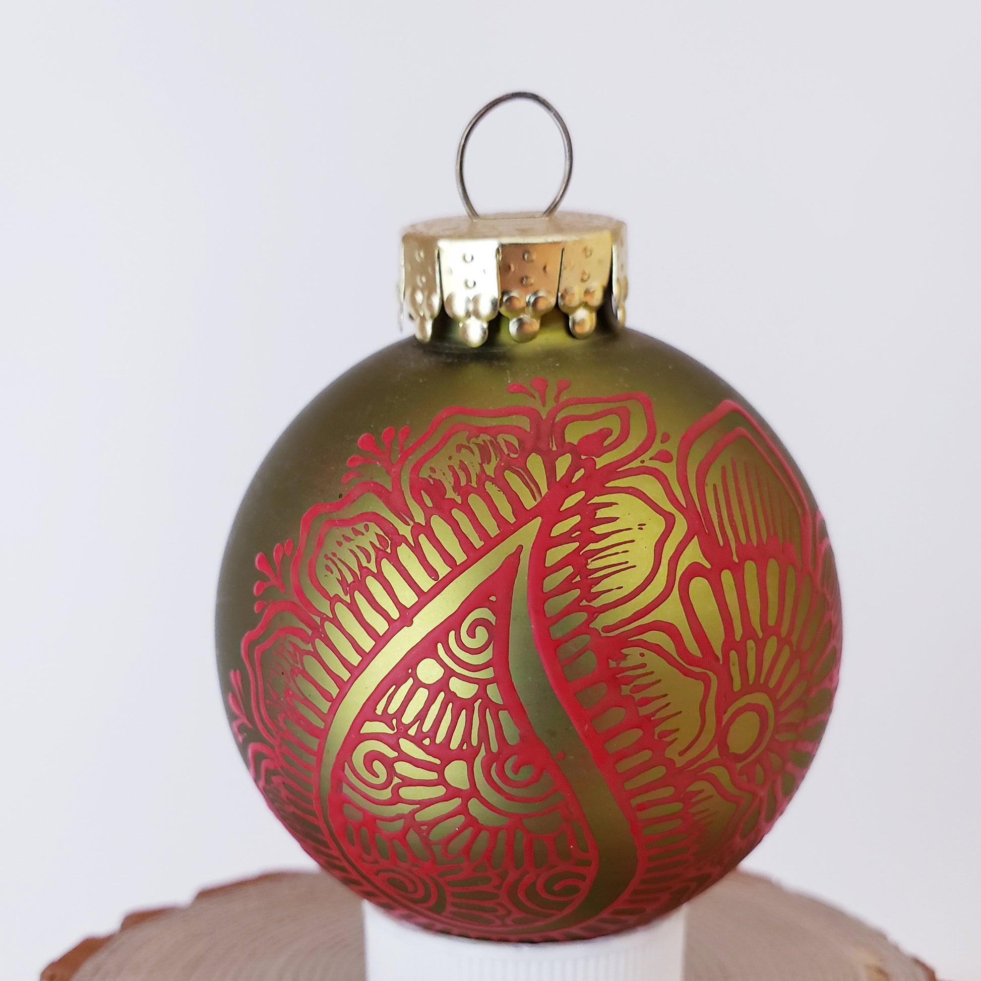 Glass ornament hand painted with great care to create an original design. 2.5" ball.