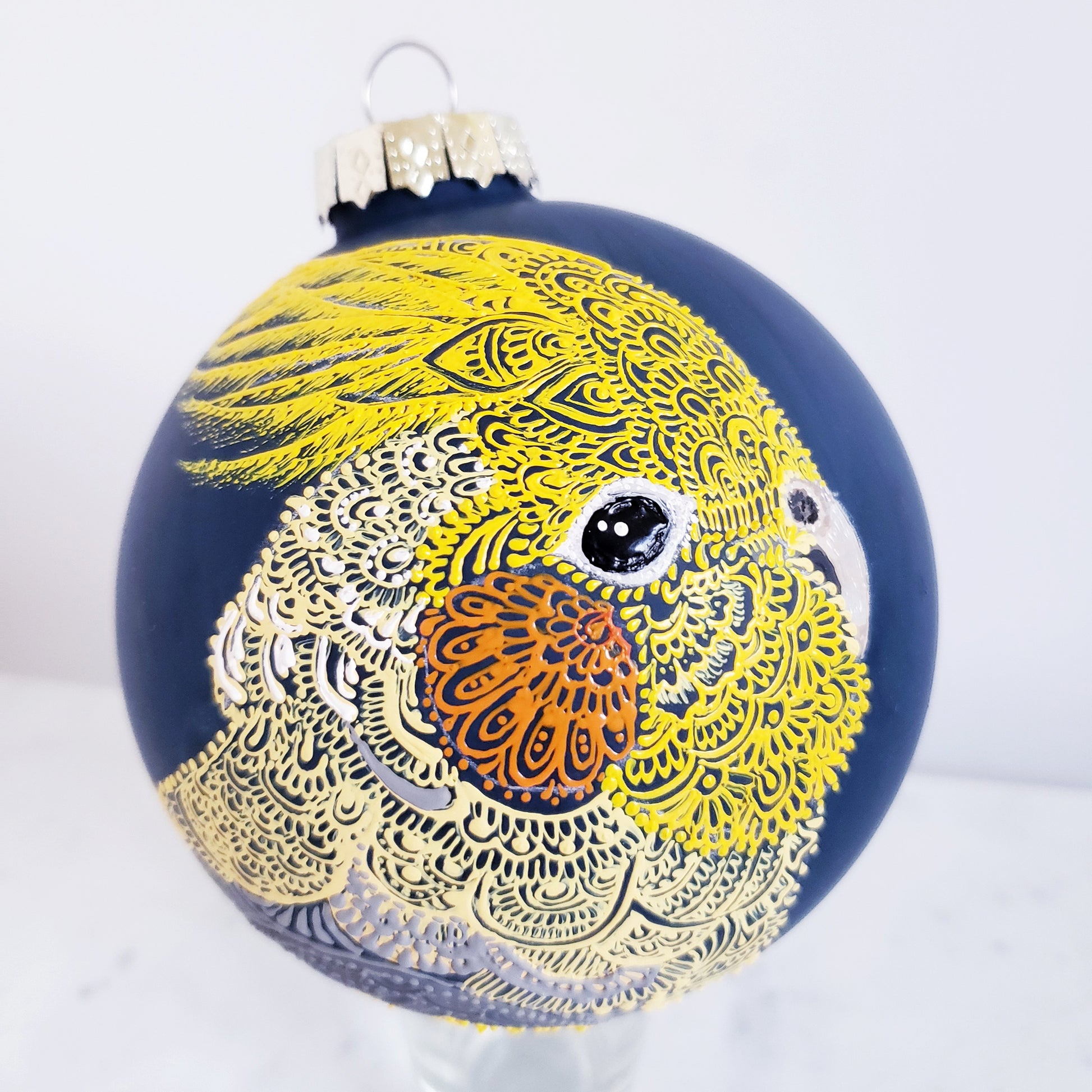 Glass ornament hand painted with great care to create an original design &