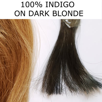 Used alone indigo will dye blond hair an uneven combination of green / blue / violet